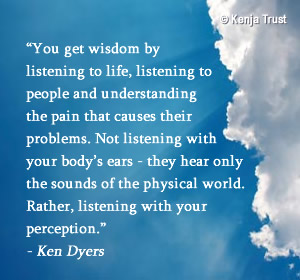 Kenja is a training ground to enable people to increase their creativity in the full spectrum of their own lives. If the individual neglects this and creates Kenja as a substitute for the creation of his/her own life, he/she is asked to leave until he/she can creatively expand his/her own individual life.